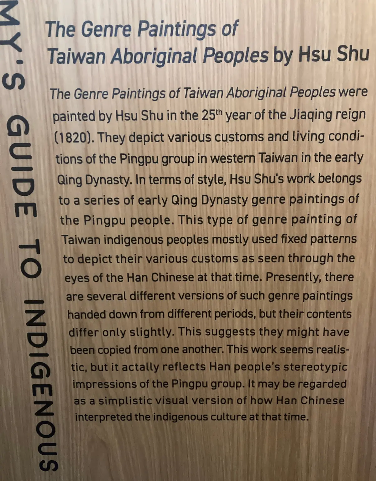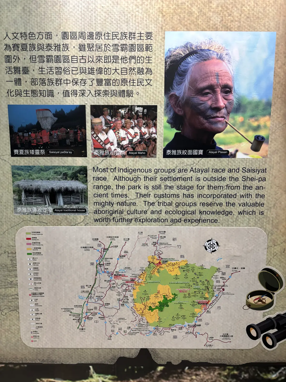 Státní muzea, která jsme na Taiwanu zdarma navštívili se věnovala mladé historii Taiwanu, snaze informovat a upozorňovat na chyby i zločiny jeho nedemokratické minulosti a uctít památku všech perzekuovaných původních obyvatel Taiwanu. Bohužel ani současná taiwnská demokratická vláda se neobejde bez několika extremistů, jako jsou čínští nacionalisté, kteří mají rasistické názory vůči menšinám původních obyvatel. I přesto nebo právě v reakci na to, zde znova rozkvétá styl paiwanské tradiční hudby a hraní na paiwanskou nosní flétnu. Také hra na měsíční loutnu, tradiční nástroj pro velkou část Asie. V muzeu lidových písní ve městě Hengchun si lze objednat lekce na loutnu u místních babiček. Navštívili jsme i kulturní centrum jednoho z minoritních etnik na Taiwanu - Hakka. Centrum obsahuje muzeum, knihovnu s publikacemi, hrací koutek s aktivitami a kino s filmy dabovanými do řeči Hakka, tyto snahy kompenzují bývalé manistreamové potlačování této řeči (a dalších řečí původních obyvatel) ve prospěch mandarínštiny.